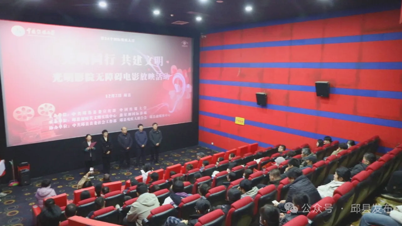 作为全国试点县,邱县举行“光明影院”无障碍电影公益放映项目启动仪式。县委宣传部、县委社会工作部、县文明办、县融媒体中心、县残联等相关单位共同出席,并为全县首批9个“光明影院”固定公益放映点授牌。这标志着一条依托县域新时代文明阵地、公共文化场馆及商业影城构建的“文化盲道”,在邱县正式铺开。
