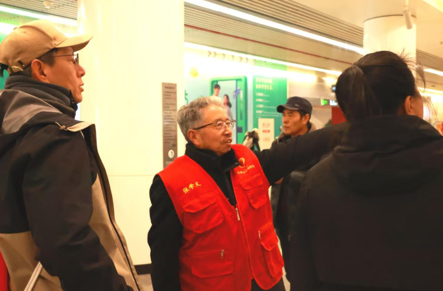 “您好!去人民公园从这边走最快。”元旦假期的石家庄地铁北国商城站,人来人往中,一位身穿红马甲、头发花白的老人格外显眼。他声音洪亮、笑容温暖,耐心地为来往乘客指引方向、解答疑问——这位精神矍铄的老人名叫张学文,今年73岁,来自安徽歙县。18年前,他为支持儿子的事业离开徽州故土,成为“新石家庄人”;8年来,他用自己的双脚丈量这座城市的街巷,更用一颗“闲不住”的心,在站台间、在社区里、在需要帮助的人群身旁,默默披上“志愿红”,累计志愿服务时长超过1175个小时。