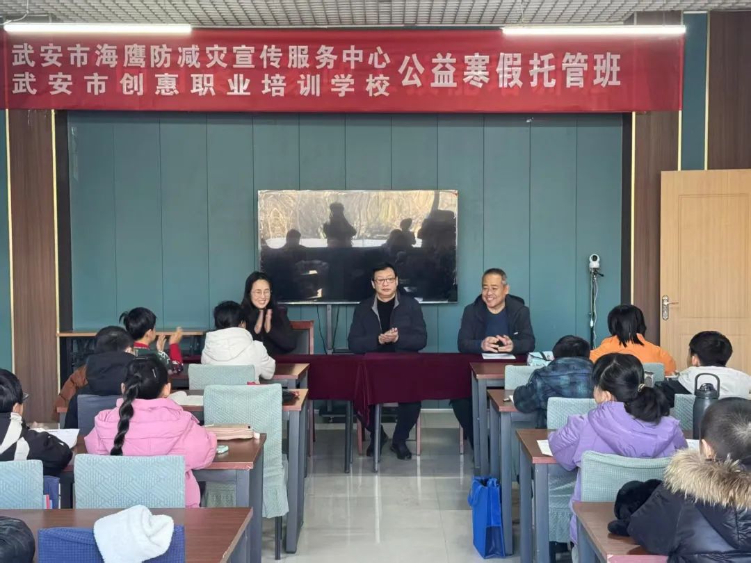 近日,武安市海鹰防减灾宣传服务中心、武安市创惠职业培训学校、向日葵养老服务中心推出新就业群体子女寒假公益托管班,招募大学生志愿者在寒假期间无偿为新就业群体子女提供托管教育。经过几天的报名,共有20余名儿童报名,1月16日上午正式开班。开班仪式上,武安市委社会工作部副部长张治国要求志愿者要以安全为重,让小朋友在托管班期间有收获,安全快乐度过假期生活。