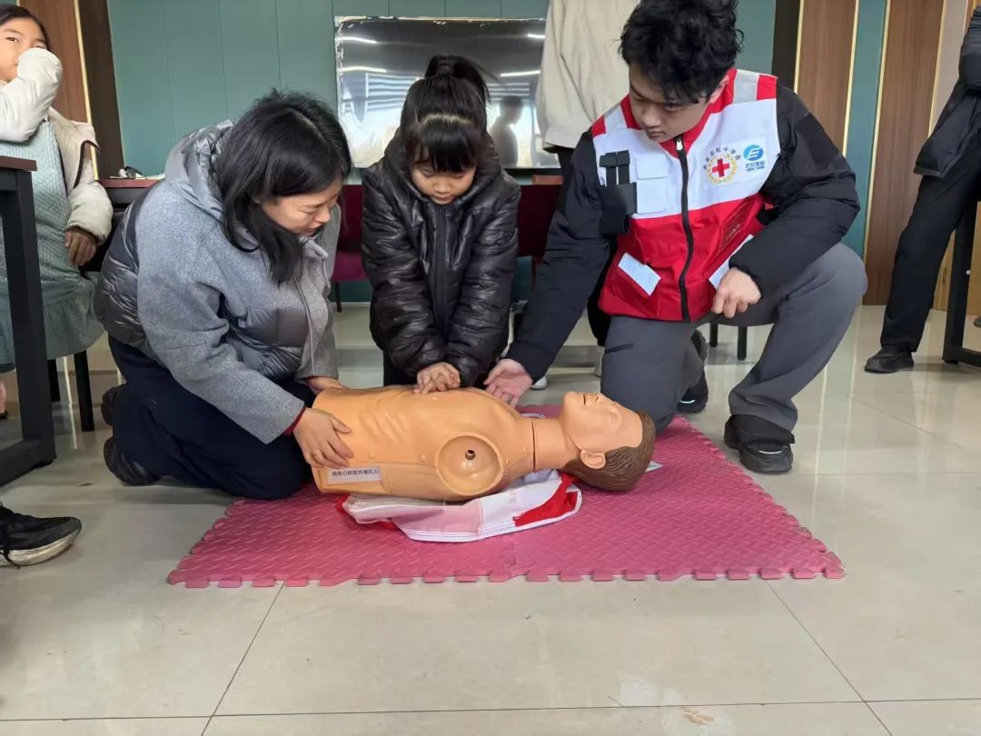 活动现场还举办了急救知识培训,现场专业人士讲解并示范了人工呼吸的操作等急救方法,现场小朋友积极参与互动,上手操作,小朋友对急救知识有了初步的认识和了解。