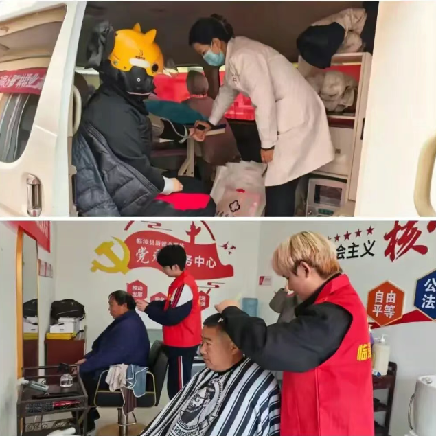 义诊区和义剪区同样人头攒动。县友爱医院的医护志愿者们耐心为新就业群体测量血压、听诊心肺,解答健康咨询,提供针对性的养生建议和用药指导;理发师志愿者则细致地为大家修剪头发,让长期奔波忙碌的户外劳动者们以清爽面貌投入工作。现场秩序井然,处处涌动着温情与感动,大家在享受贴心服务的同时,也感受到了来自社会各界的尊重与关爱。