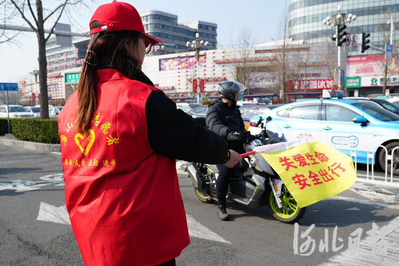 3月15日上午,唐山市“文明交通、青春护航”大学生交通安全志愿劝导活动启动仪式在唐山师范学院举行。唐山市委社会工作部、唐山师范学院、唐山市公安局交通管理支队共同开展了此次活动,唐山师范学院200名大学生成立志愿劝导团队。启动仪式后,大学生志愿者分赴市中心区45个路口,对骑乘电动自行车不佩戴头盔等行为开展劝导。