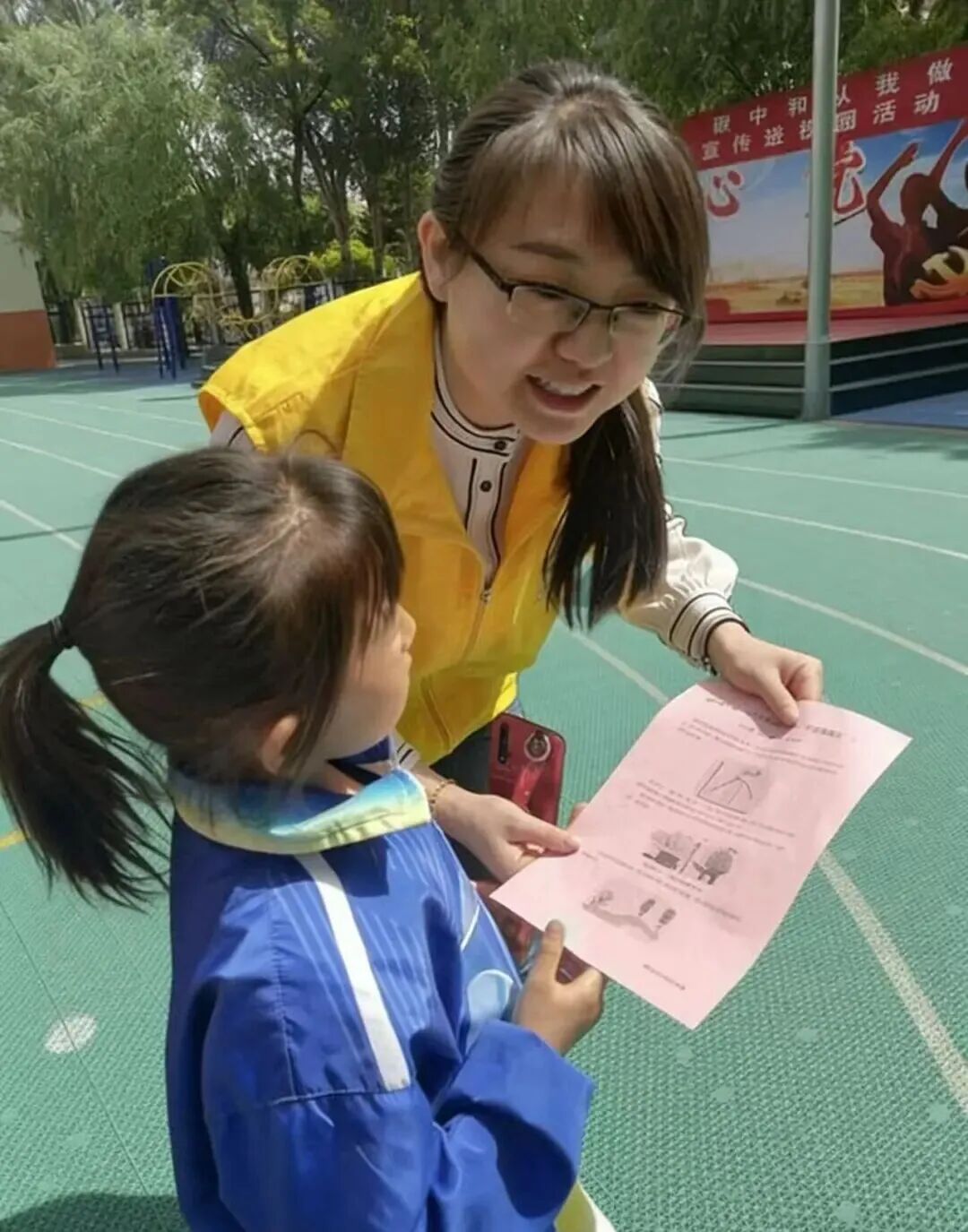 ▲赵树峰参加学校主题宣传活动,向学生普及垃圾分类知识。
