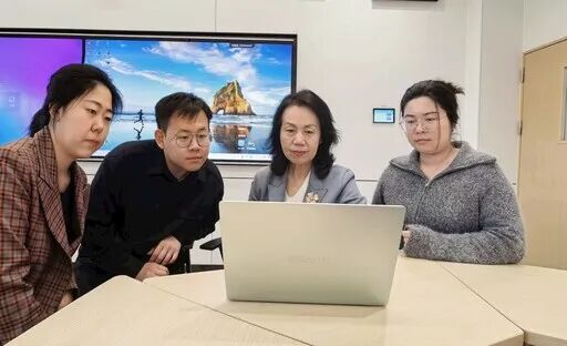 ▲何海燕(右二)指导学生开展科研工作。