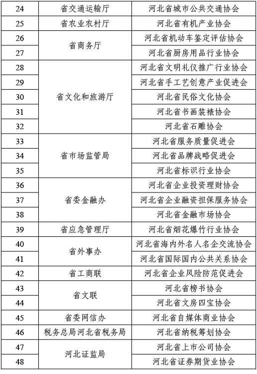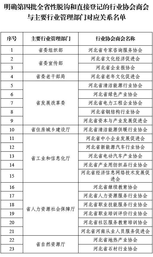 河北省明确第四批脱钩和直接登记的全省性行业协会商会对应主要行业管理部门