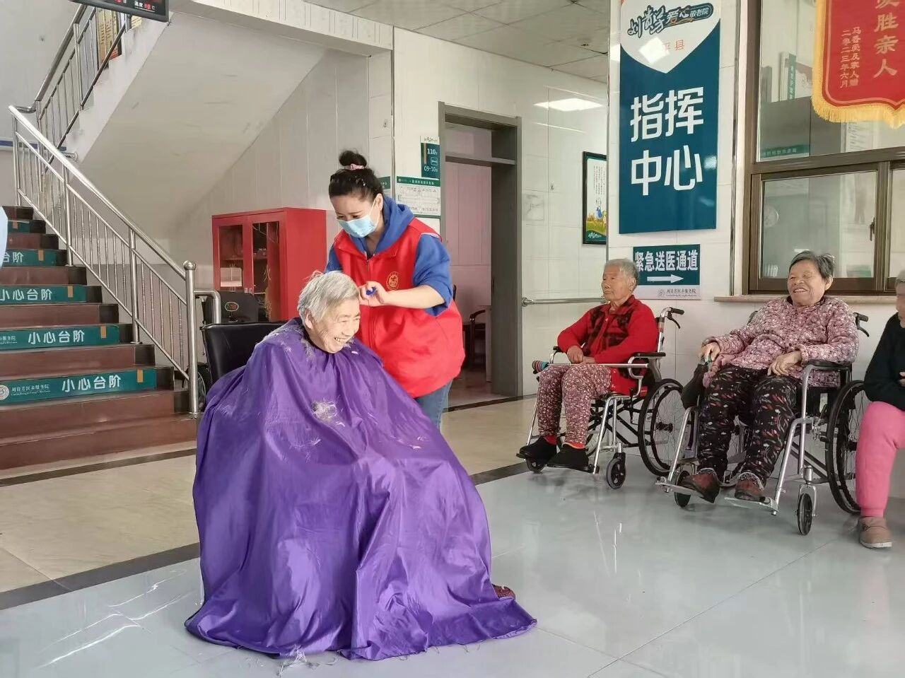 当天,志愿者早早来到刘贵芳医养服务院,准备好理发工具、摆好座椅,耐心询问每位老人的需求,根据他们的喜好和习惯开展暖心义剪;专业团队带来验光设备,为每一位老人进行视力检测,调试度数,确保为每一位老人配出的老花镜清晰、舒适;爱心联盟商户将新鲜出炉的面包送到每位老人手中。