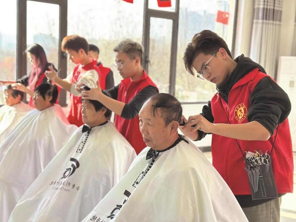 邱县县委社会工作部组织志愿服务工作者为社区居民义务理发。 邱县县委宣传部 供图